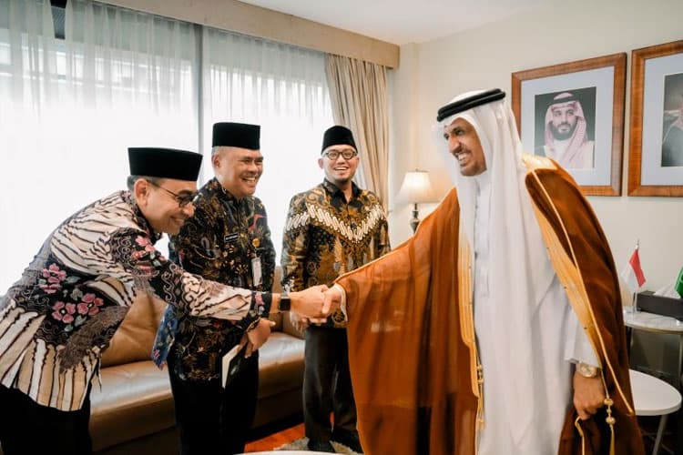 Kepala Badan Penyelenggara Haji (BP Haji), Mochammad Irfan Yusuf, bersama Wakil Kepala BP Haji, Dahnil Anzar Simanjuntak, melakukan kunjungan resmi ke Kedutaan Besar Kerajaan Arab Saudi di Jakarta.